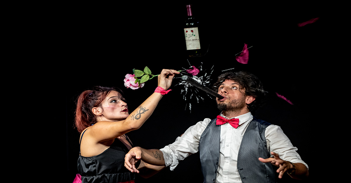 Un tavolo e due sedie, il tintinnio di due calici che si toccano e i fumi inebrianti di un buon vino. Il primo appuntamento però, si sa, non è mai facile. Tra gli impacci e gli imbarazzi, lei e lui, impareranno a conoscersi, divertirsi ed innamorarsi. Giocoleria, acrobatica ed equilibrismi stupiranno il pubblico in questo spettacolo dal sentore inebriante.